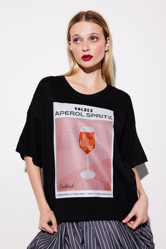 POLERA UNISEX ALGODÓN NEGRA- APEROL.