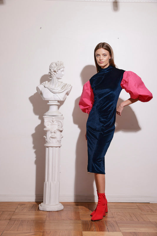 VESTIDO TERCIOPELO BICOLOR - NINA