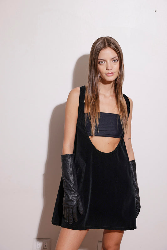 VESTIDO JARDINERA TERCIOPELO NEGRO TALLA UNICA- AGATA.