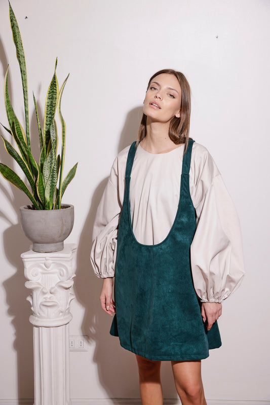 VESTIDO JARDINERA GAMUZA VERDE TALLA UNICA- AGATA.
