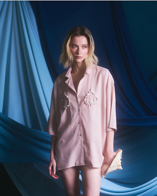 CAMISA GUAYABERA LINO ROSA APLICACIONES DE MAR -MATEO