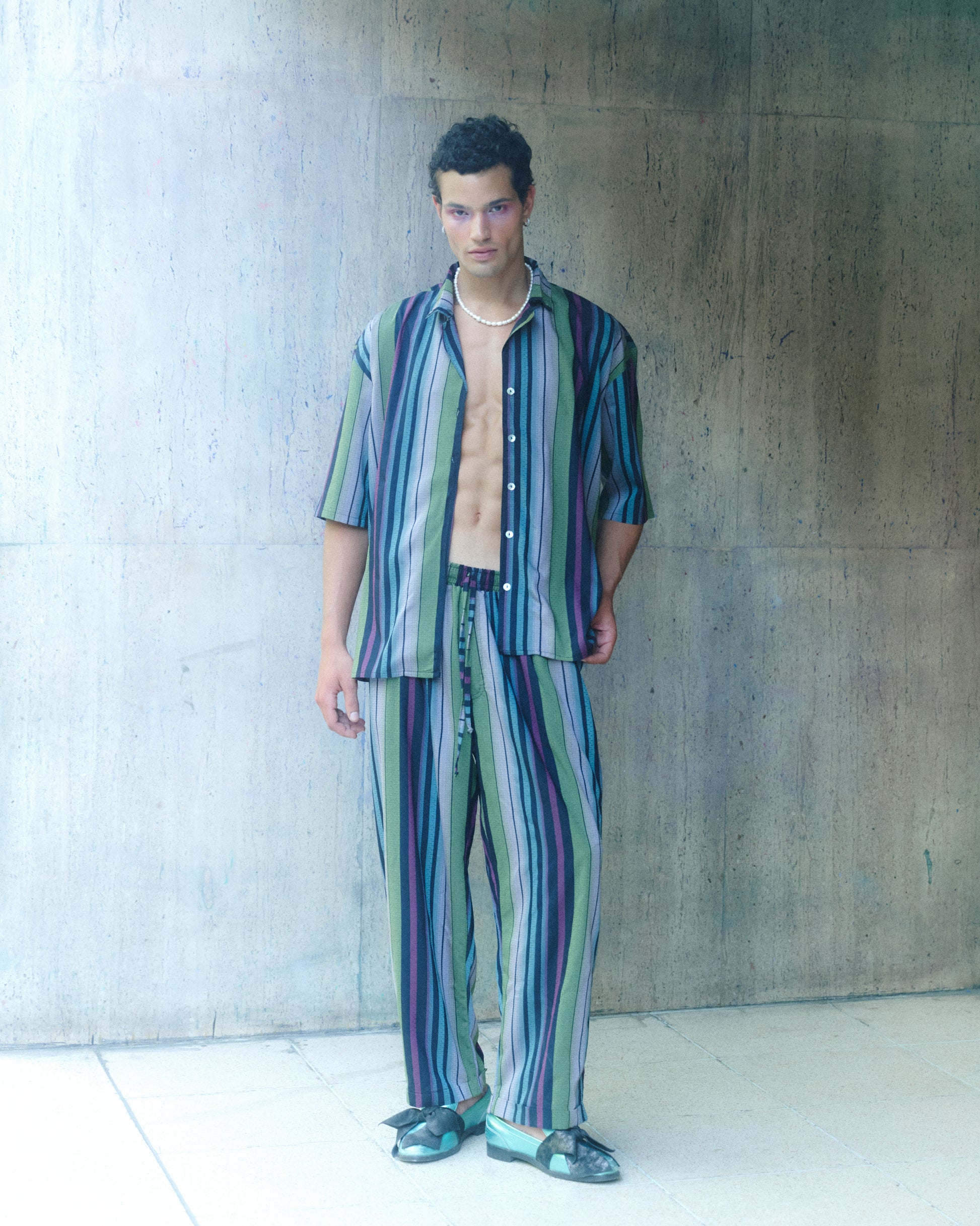 Esta camisa forma parte de un conjunto unisex, pensado para quienes buscan elegancia relajada y estilo.